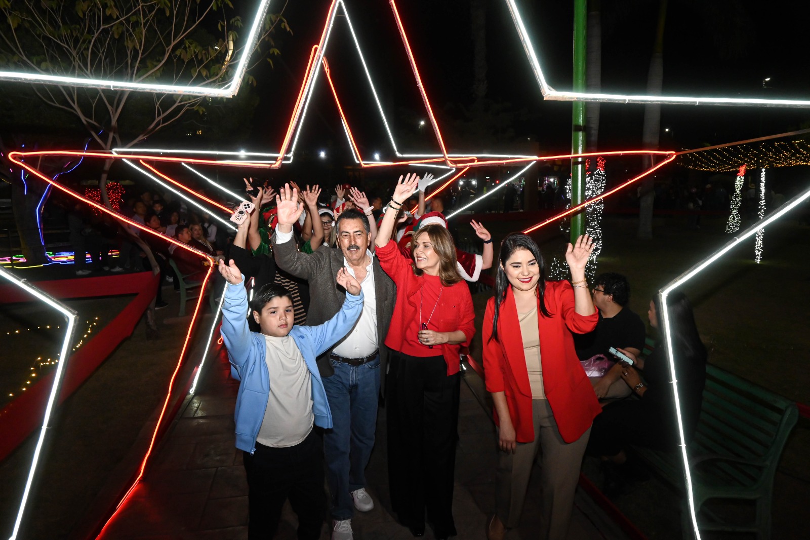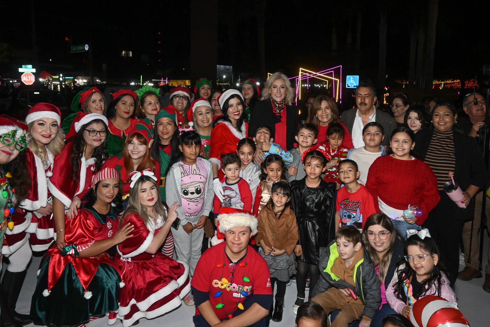 El evento estuvo encabezado por el Presidente Municipal, Javier Lamarque y su esposa, la Dra. Martha Patricia Patiño Fierro, Presidenta del Voluntariado de DIF Cajeme, quienes acompañados por su familia, dieron la bienvenida a las familias cajemenses, la celebración también contó con la presencia de niñas y niños caracterizados de Santa y duendes, quienes aportaron un toque tierno y festivo al ambiente.