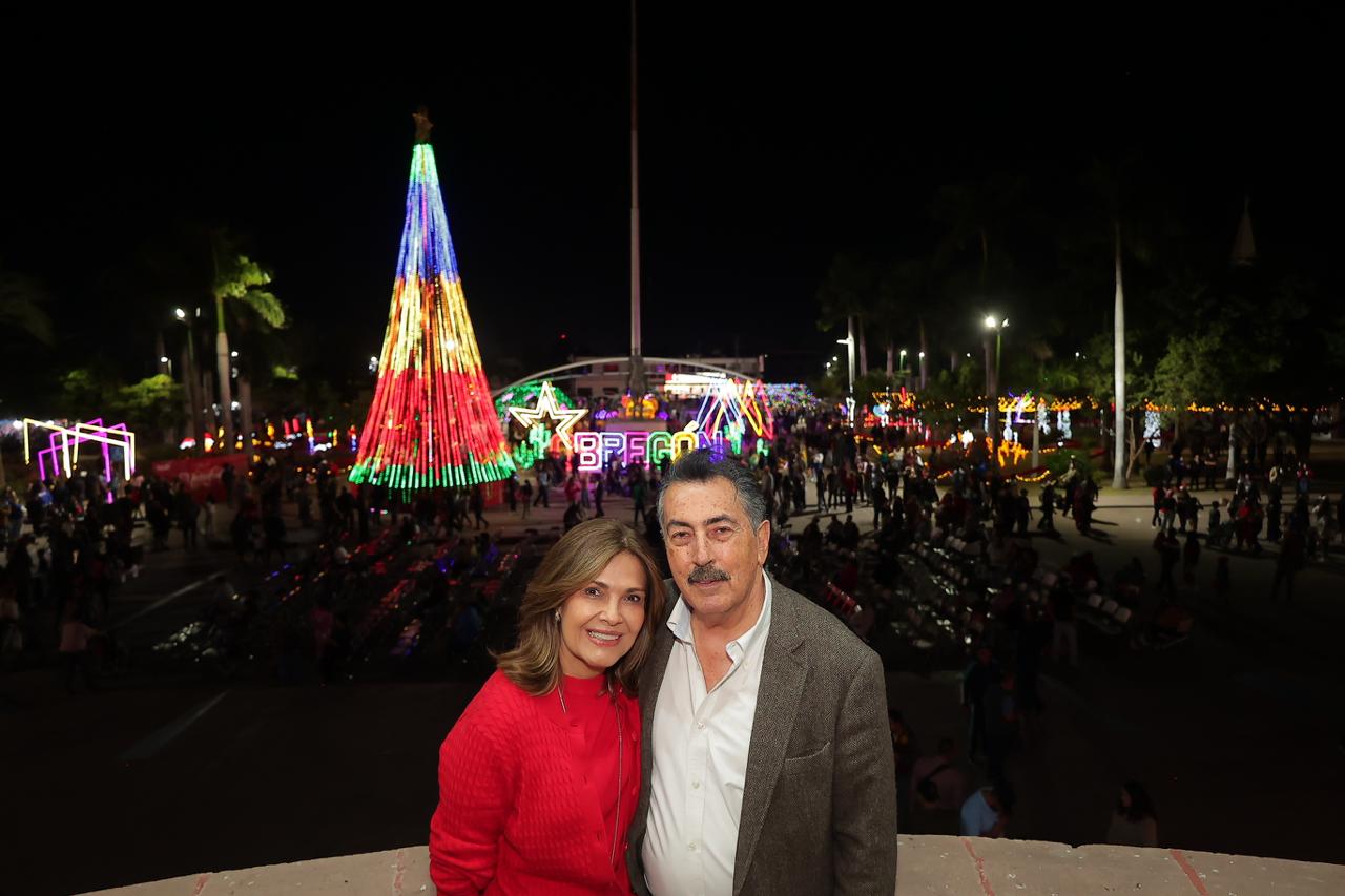 El Gobierno Municipal de Cajeme celebró con gran éxito el inicio de la temporada con el encendido del Árbol Navideño y la iluminación especial de la Plaza Municipal Álvaro Obregón, que se convirtió en un espacio lleno de luz, color y alegría para miles de familias.