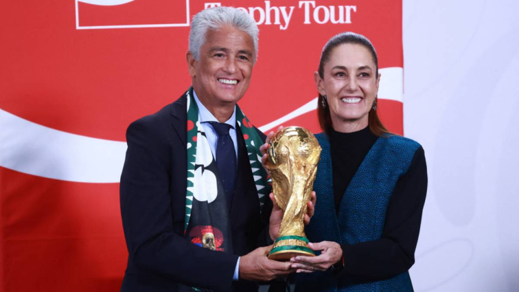 En el Salón Tesorería de Palacio Nacional, la mandataria presentó el trofeo que será entregado a la selección campeona el 19 de julio, como parte de las actividades simbólicas rumbo al inicio de la justa organizada por la FIFA.
