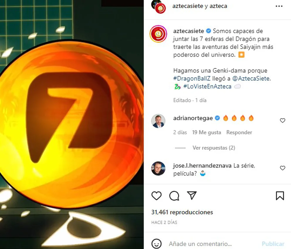 “Somos capaces de juntar las 7 esferas del Dragón para traerte las aventuras del Saiyajin más poderoso del universo. Hagamos una Genki-dama porque #DragonBallZ llegó a @AztecaSiete. 🐉 #LoVisteEnAzteca” se pudo leer en el portal oficial. El retorno de Dragon Ball Z a la televisión abierta representó una excelente noticia para los fans de la serie, pues la publicación juntó más de 30 mil reproducciones en Instagram.
