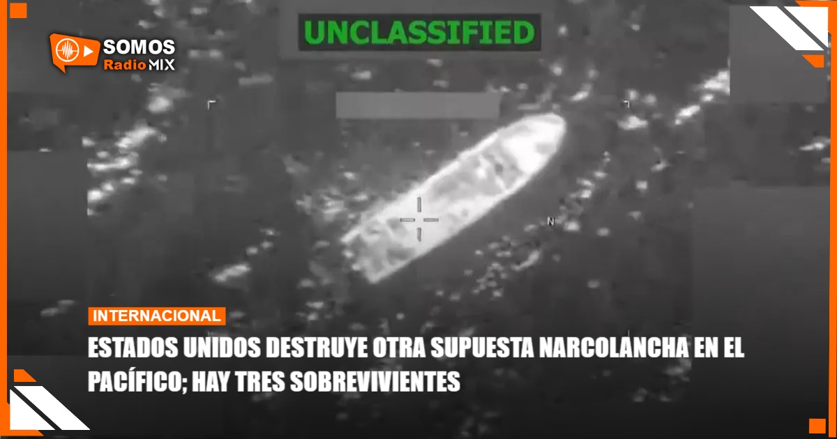 Las Fuerzas Armadas de Estados Unidos llevaron a cabo un nuevo ataque contra una supuesta narcolancha en el océano Pacífico, en donde además explicaron que tres sobrevivientes aunque no detallaron si hubo víctimas mortales.