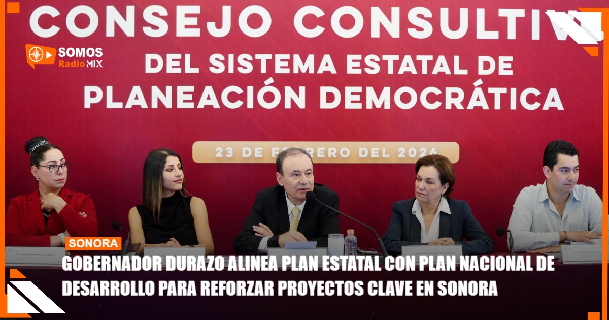 Hermosillo, Sonora; 23 de febrero de 2026.- El gobernador Alfonso Durazo Montaño encabezó la presentación de los resultados de la actualización del Plan Estatal de Desarrollo, un ejercicio que requirió la realización de foros de consulta con la participación ciudadana para armonizar plenamente el proyecto estatal con el nacional, reforzando la congruencia en temas prioritarios como justicia social, transición energética, soberanía alimentaria, gobernanza e innovación pública