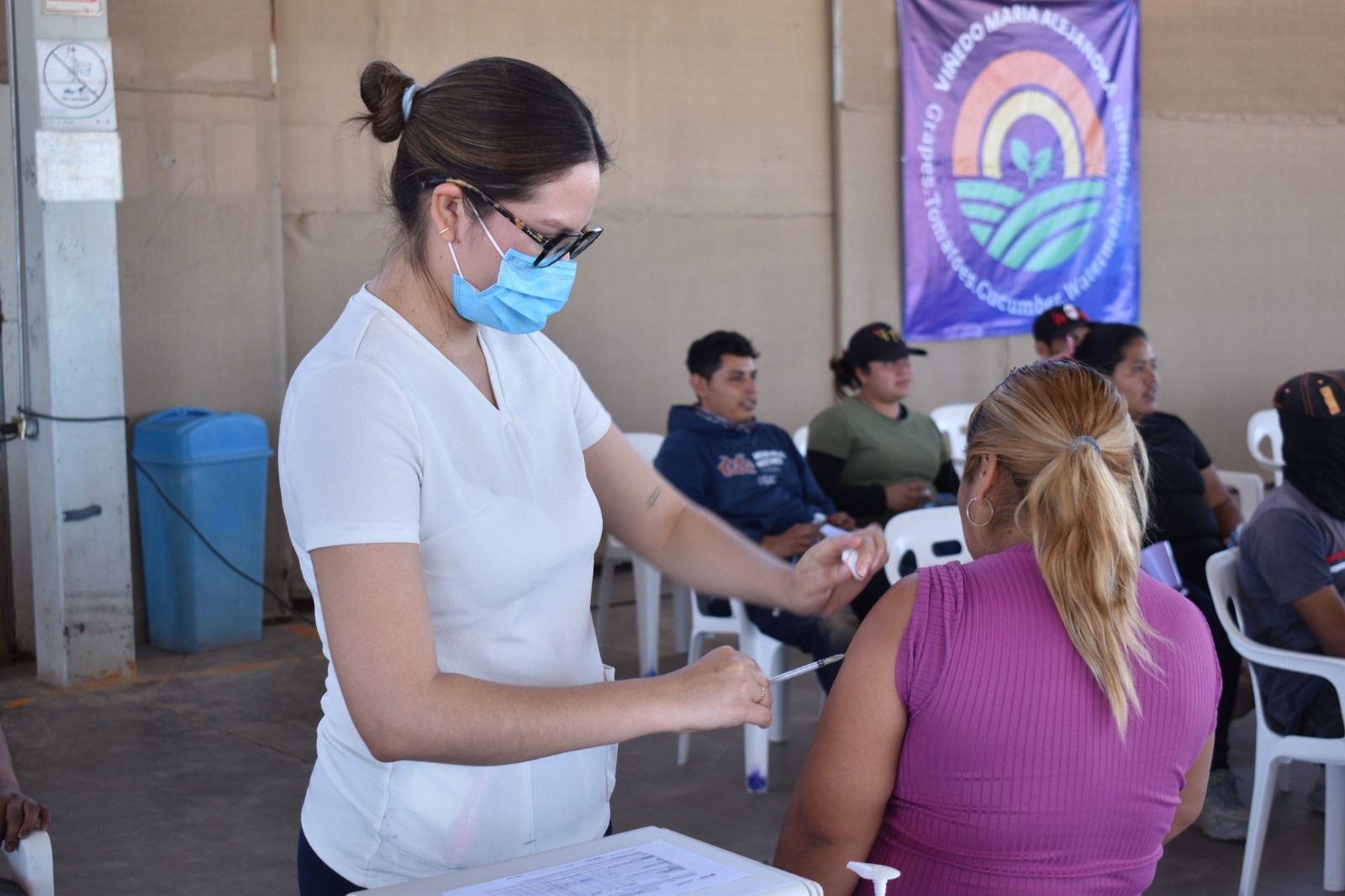 Estas acciones se realizan en coordinación con el sector Salud, mediante brigadas que recorren los distintos campos agrícolas del estado para aplicar el inoculante a las y los jornaleros que arriban durante la temporada de cosechas.
