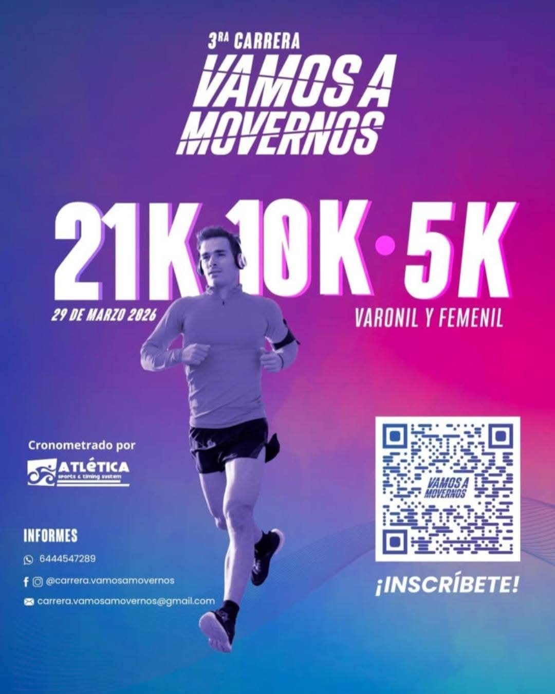 Las y los interesados podrán inscribirse a través de un código QR, para mayores informes contactarse vía WhatsApp al 6444547289 o al correo carrera.vamosamovernos@gmail.com.