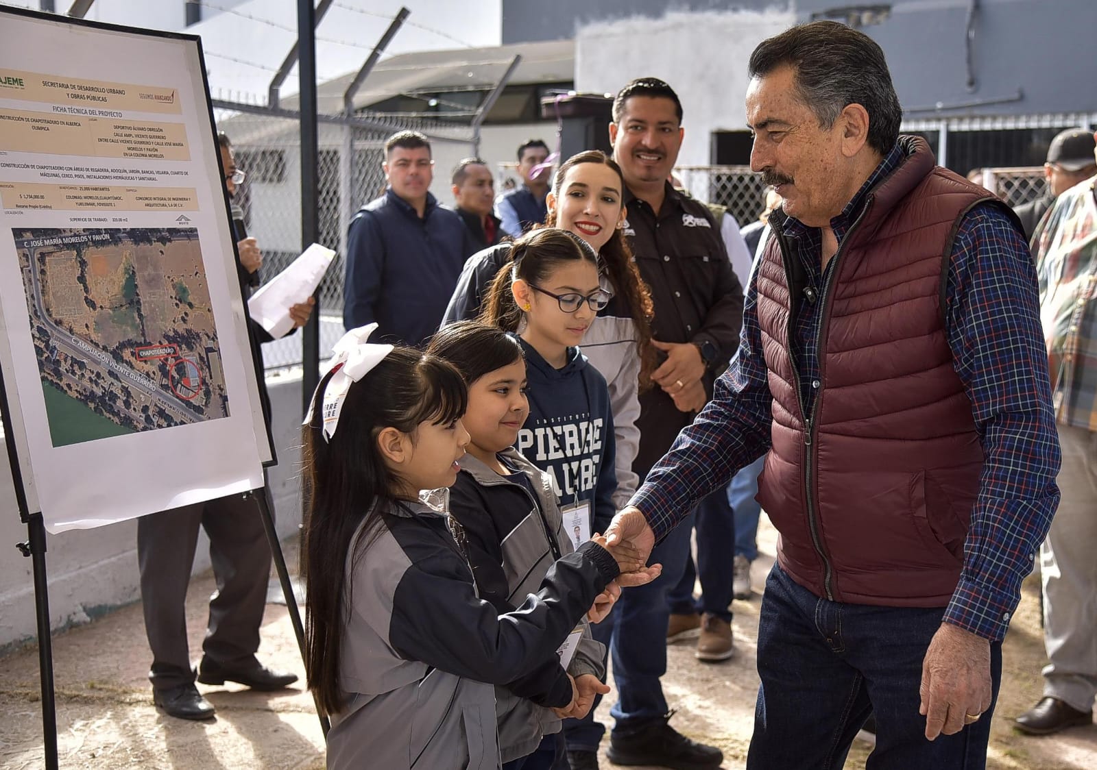 “Hoy iniciamos aquí con esta obra del chapoteadero, este chapoteadero ya no sirve, incluso nunca sirvió porque no tenía un sistema de filtrado ni nada, simplemente tenía la conexión con la bomba, era una tubería nada más, entonces se va a construir, no se va rehabilitar, se va a construir un nuevo chapoteadero que ahora sí va tener su propio sistema de filtración y su cuarto de máquinas de bombas todo con su propio sistema y si va ser un chapoteadero de a deberás que va garantizar la salud de las niñas y niños que vengan a divertirse a este lugar”, enfatizó.