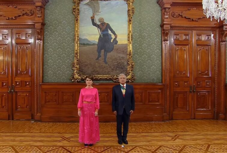 Posteriormente, el presidente Andrés Manuel López Obrador y su esposa, Beatriz Gutiérrez, aparecieron en el salón de Palacio Nacional.