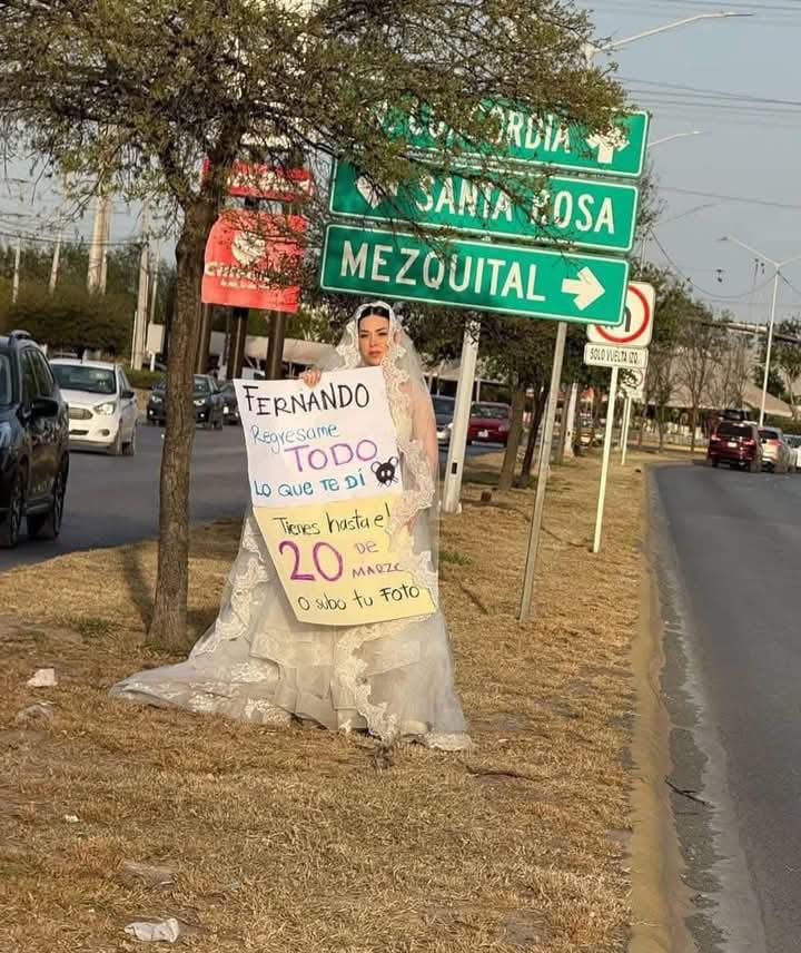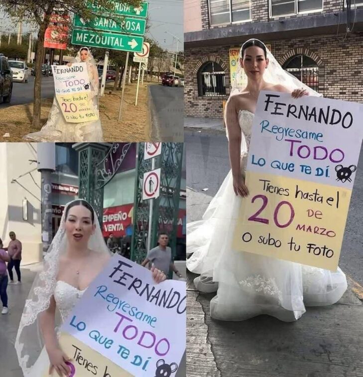 Para hacerlo viral y dar con FERNANDO “N”, el organizador que la engañó, decidió manifestarse en plena Av. Morelos, en el centro de Monterrey.