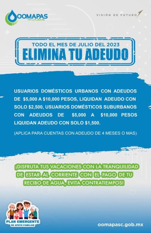 OOMAPAS de Cajeme Te invita para que aproveches todo el mes de julio el programa «Elimina tu adeudo, acércate al módulo de tu preferencia!