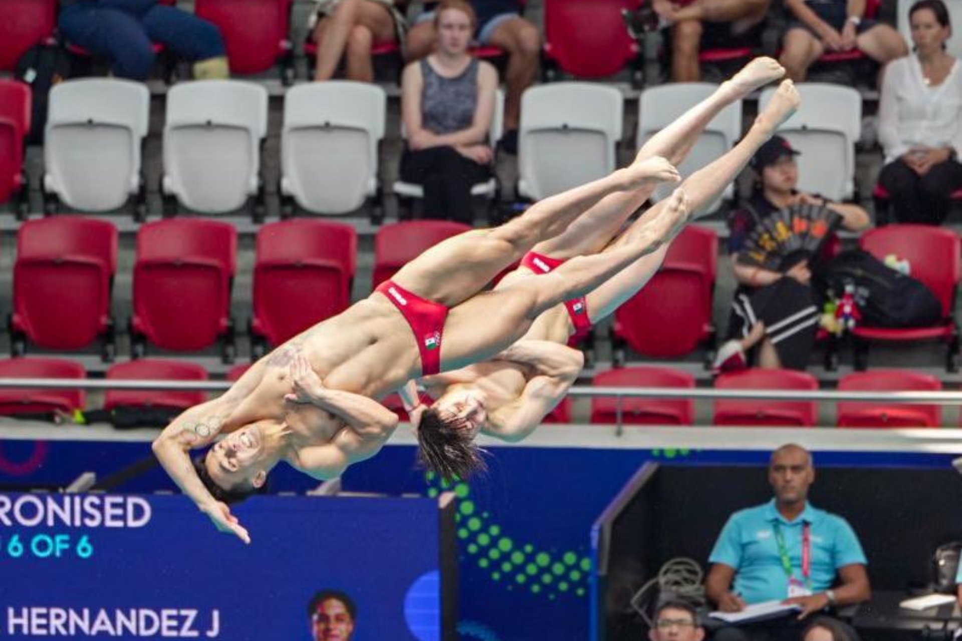 De nada les valió a los saltadores mexicanos, vigentes subcampeones olímpicos, presentar la serie con mayor dificultad de todos los finalistas ante la perfección de Wang y Zhen, que firmaron unos espectaculares 99,18 puntos en su sexto y último salto.
