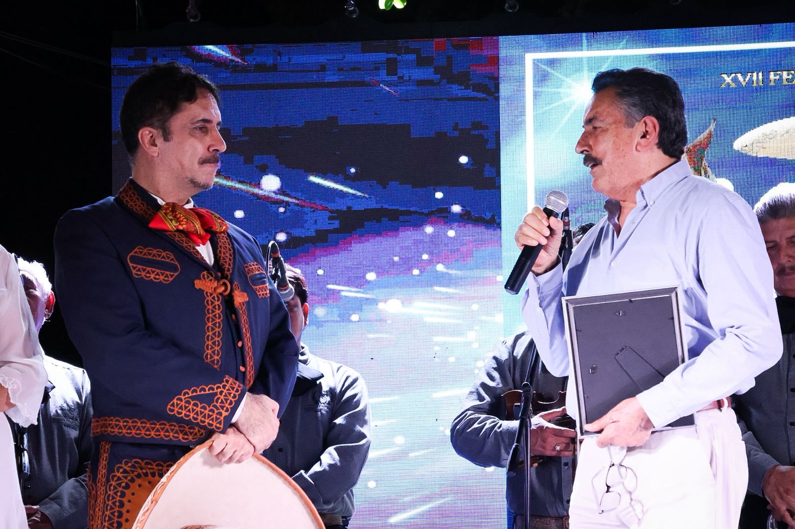 Luego de la actuación dancística del grupo ENTE y la presentación musical de Rafael Negrete, acompañado del Mariachi Nuevo Continental, la Presidenta del Voluntariado de DIF Cajeme, Martha Patricia Patiño Fierro, en compañía de las autoridades presentes, hizo la entrega de un reconocimiento al Grupo Folklórico Ente, mientras que el Alcalde, Javier Lamarque, entregó una placa de reconocimiento al Barítono Jorge Negrete.