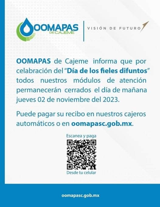 Igual se puede pagar su recibo en los cajeros automáticos o en la pagina web: oomapasc.gob.mx