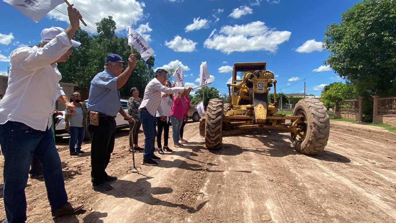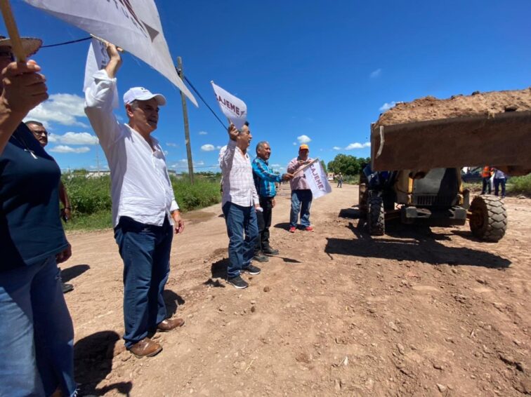 Después, el Presidente se dirigió a la delegación del ejido Vicente Guerrero, comunidad rural en la que dio el arranque para la continuación de obra de pavimentación e introducción de tomas de agua potable y descargas domiciliarias en la avenida Luis Corral Robles entre las calles Guadalupe Cotación y Alfonso Ayala.