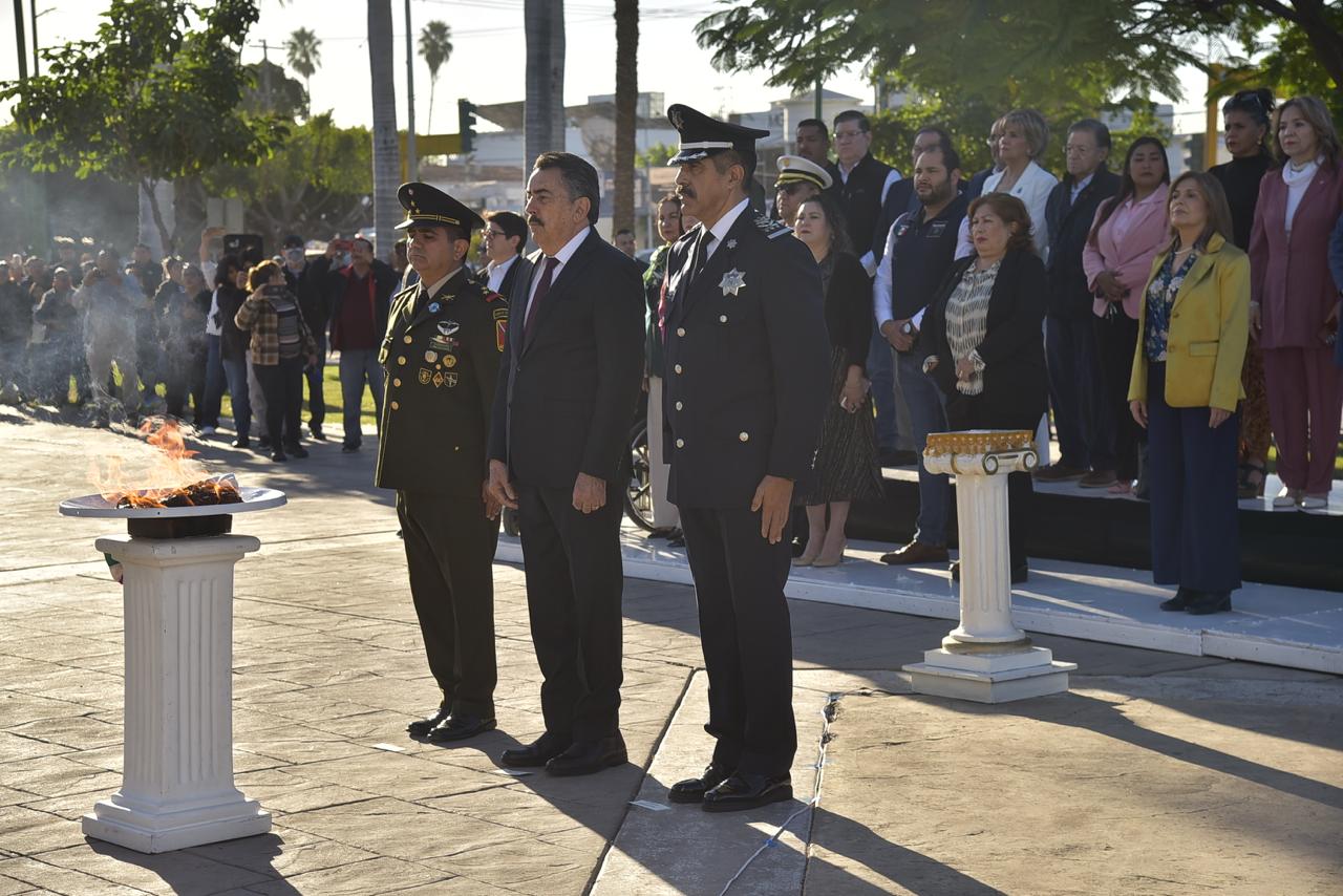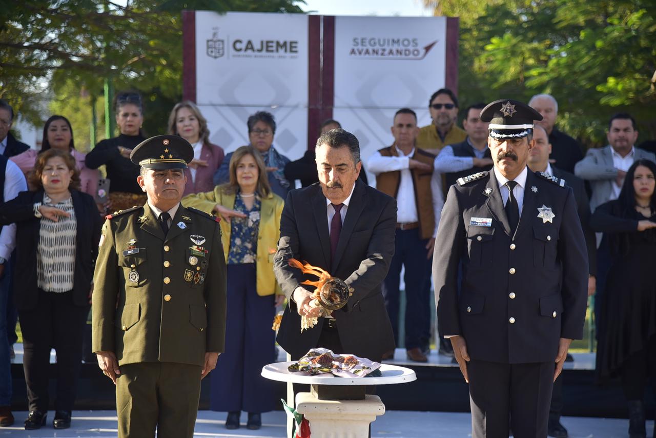 Durante los eventos cívicos, acompañaron la Presidente Municipal, el Coronel de Infantería Roberto Rico Vázquez, Comandante del 60 Batallón; Claudio Cruz Hernández, Jefe de la Policía Preventiva y Tránsito Municipal de Cajeme; Josefina Leyva Gonzales, Síndico Municipal; Jackeline Ramos Barba, Coordinadora General de Identidad y Formación Ciudadana; María Cristina Pérez Valenzuela, Subdirectora de Valores Cívicos; entre otros.