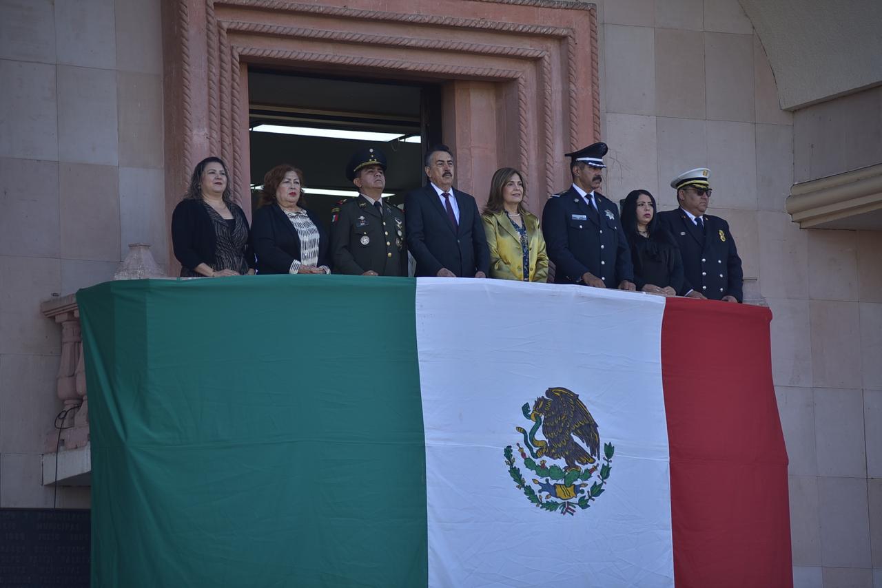 Posteriormente se dirigió al balcón del Palacio Municipal para presidir el desfile cívico en conmemoración del Lábaro Patrio, en el que participaron corporaciones de los tres órdenes de gobierno, instituciones educativas de los diferentes niveles de instrucción y las Comisarías de la localidad.