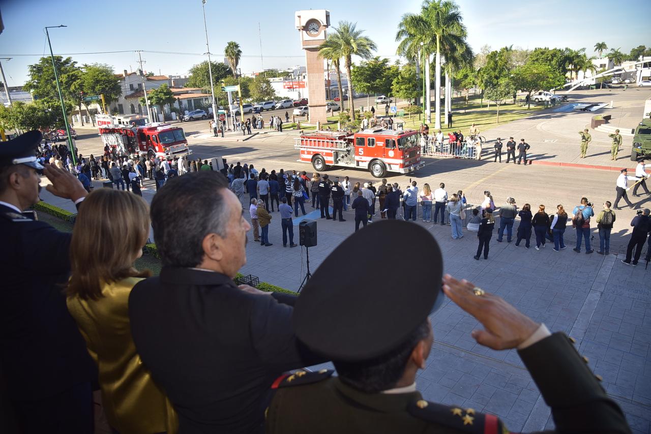 La SEDENA, representada por personal del 60 Batallón de Infantería inició el recorrido motorizado, seguido por la Secretaría de Seguridad Pública Municipal y el departamento de Bomberos de Ciudad Obregón, entre otros.