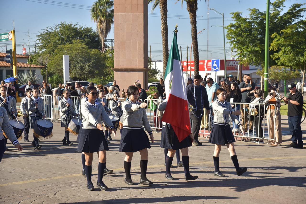 Luego de la ceremonia de incineración e izamiento de Bandera, con la participación 2 mil 51 personas distribuidas en 29 contingentes, 41 vehículos y 15 motocicletas, se llevó a cabo el tradicional Desfile Cívico alusivo al 113 Aniversario del Día de la Bandera Mexicana, eventos que fueron presididos por el Presidente Municipal, Javier Lamarque en compañía de la Presidenta del Voluntariado de DIF Cajeme, Martha Patricia Patiño Fierro y funcionarios municipales.