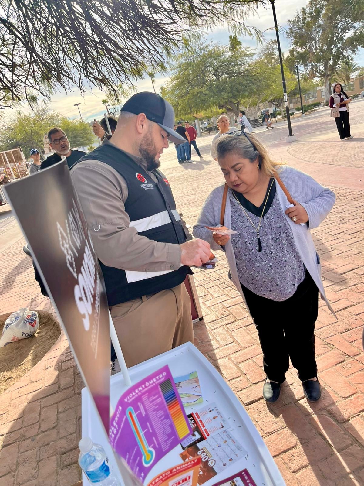 Asimismo, en el marco de la Feria de Servicios “Sonora Atiende”, realizada en la Plaza La Madre de Puerto Peñasco, se llevó a cabo la entrega de material informativo y se reforzó la cultura de la denuncia y la participación ciudadana en la prevención de delitos.