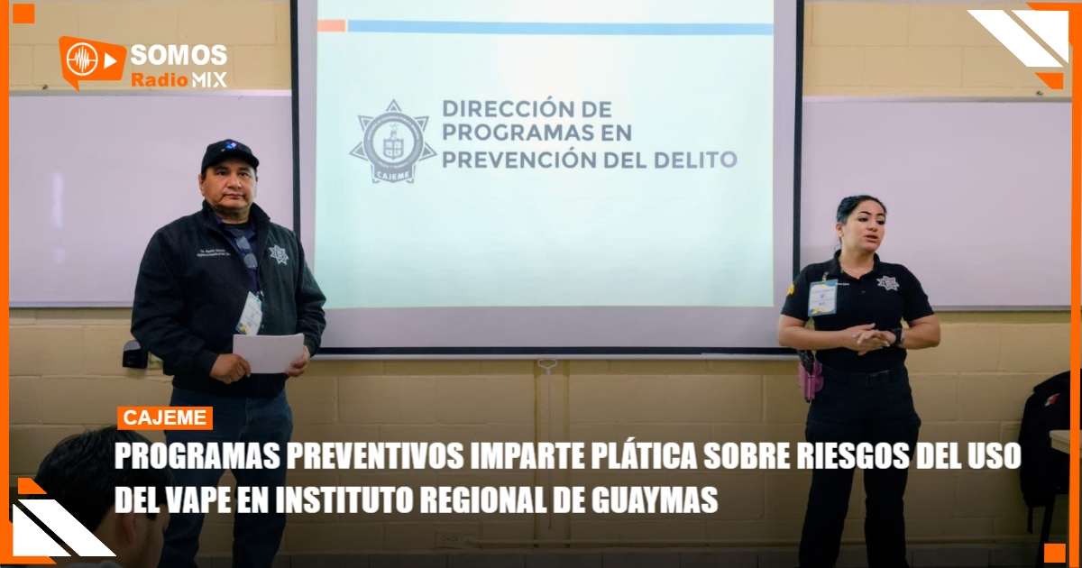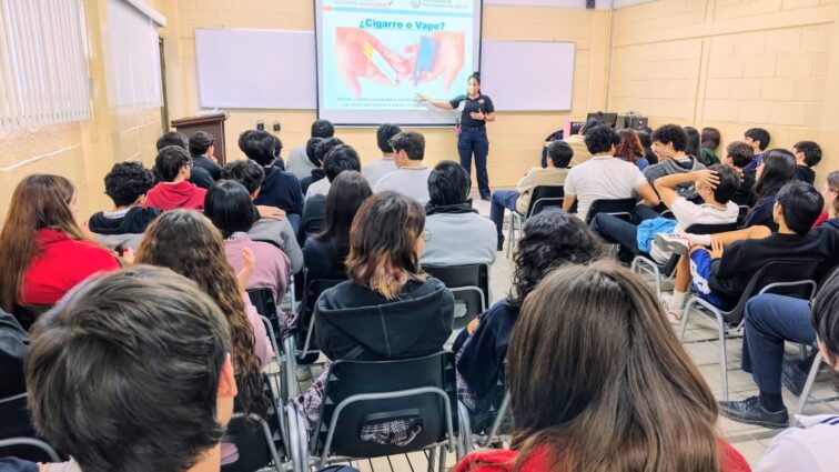 Con el objetivo de promover la prevención y el cuidado de la salud entre las y los jóvenes, personal de la Dirección de Programas Preventivos impartió una plática informativa sobre los riesgos y consecuencias del uso del vapeador a alumnas y alumnos de nivel preparatoria del Instituto Regional de Guaymas.