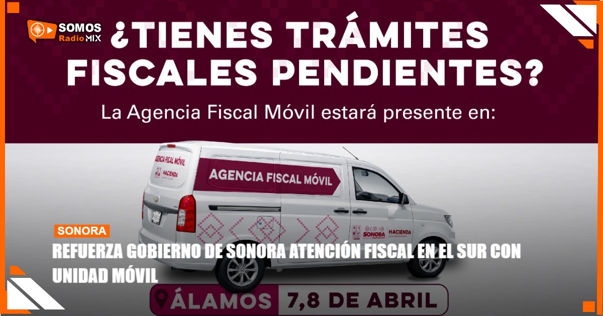 Hermosillo, Sonora; 6 de abril de 2026.- El Gobierno de Sonora, a través de la Dirección General de Recaudación de la Secretaría de Hacienda, informa a los contribuyentes que la agencia fiscal móvil estará presente en los municipios del sur del estado con el fin de acercar los servicios a los contribuyentes.