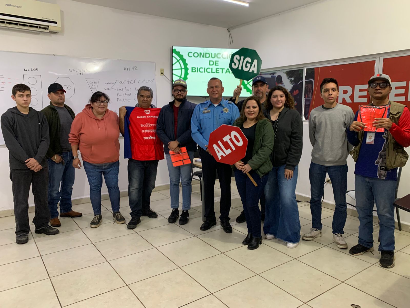 Asimismo, en la misma fecha se realizaron pláticas de educación vial dirigidas al grupo de ciclistas “OBR EN BICI”, en las cuales se abordaron temas como el Reglamento de Tránsito Municipal de Cajeme; manejo a la defensiva; conducción de motocicletas conforme a los artículos 114 al 123; uso del cinturón de seguridad conforme al artículo 108; uso del teléfono celular al conducir conforme al artículo 108; señales restrictivas, preventivas e informativas conforme al artículo 197; y límites de velocidad establecidos en el artículo 88.