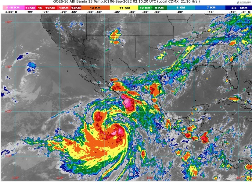 La tormenta tropical Kay evolucionó a huracán de categoría 1 al sureste de Colima, así lo dio a conocer la Comisión Nacional del Agua (Conagua) cerca de las 16:44 horas de este lunes 5 de septiembre. El centro se localizó a 495 kilómetros al sureste de Manzanillo Colima y a 855 km del sur-sureste de Cabo San Lucas, Baja California Sur. Se prevén lluvias puntuales torrenciales, vientos con rachas fuertes y oleaje elevado en costas de estados del occidente del país.