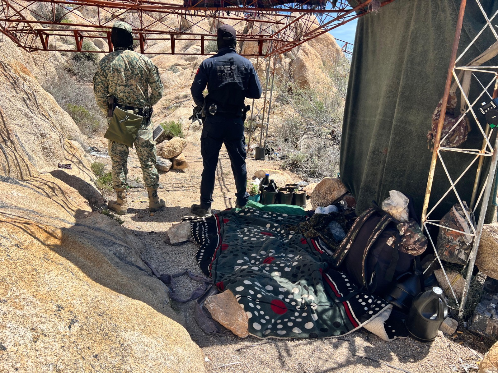 Durante los recorridos de prevención se logró la localización de infraestructura clandestina utilizada para actividades de “halconeo”, es decir, monitoreo ilegal de movimientos en la zona para facilitar el tránsito de personas y posibles actos delictivos.