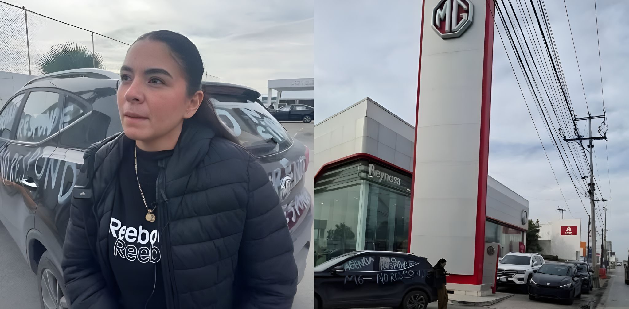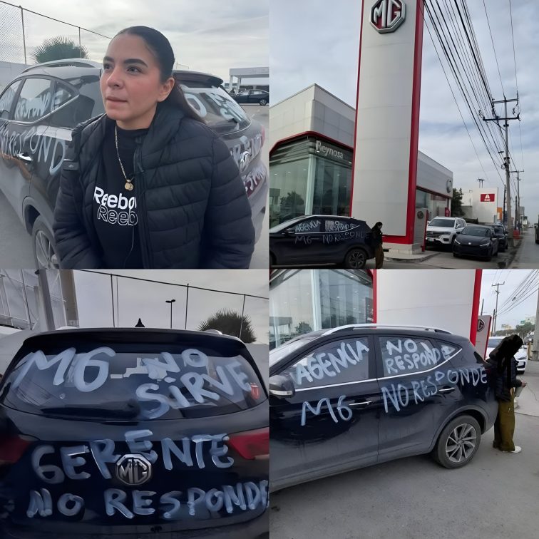 Ella comenta: el día de hoy estoy parada afuera de la agencia MG Reynosa porque nadie se hace responsable por mi camioneta que después de estar 10 MESES ahí…resulta desde el 30 de diciembre que desde que me la vendieron tenía lo mínimo de aceite de transmisión, la caja de cambios está dañada también y desde ese día se esconden y nadie me resuelve nada, ese vehículo es un peligro para mí y mi familia yo no me voy a mover de aquí. Hasta que me atiendan.