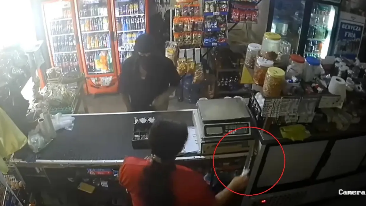 A través de redes sociales se ha viralizado un vídeo de una cámara de seguridad de una tienda de abarrotes, en la que una mujer enfrenta a un asaltante golpeándolo en el rostro con un cuchillo, mientras el ladrón tomaba el dinero de la caja.#Seguridad #Colima pic.twitter.com/1DNLJy9bG5
